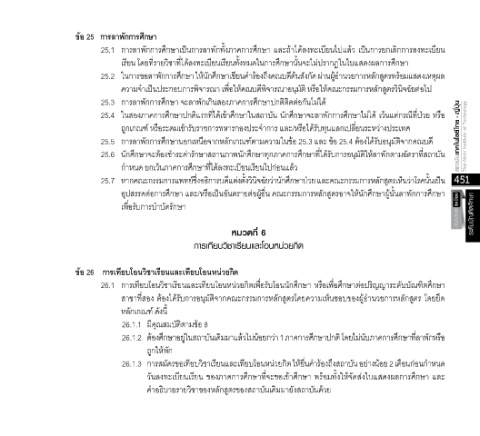 ข้อ 26 การเทียบโอนวิชาเรียนและเทียบโอนหน่วยกิต