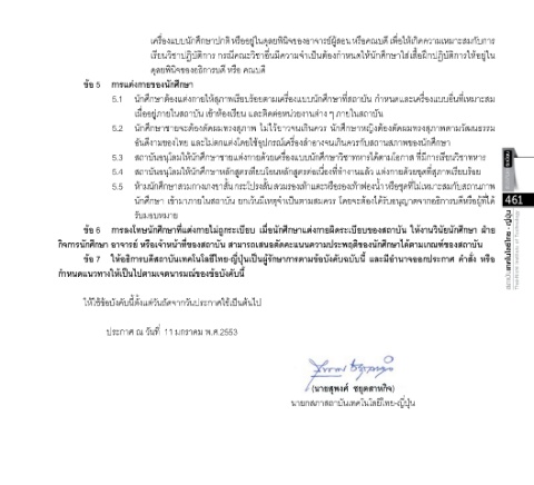 5.5 ห้ามนักศึกษาสวมกางเกงขาสั้น กระโปรงสั้น สวมรองเท้าแตะหรือรองเท้าฟองน�้า หรือชุดที่ไม่เหมาะสมกับสถานภาพ