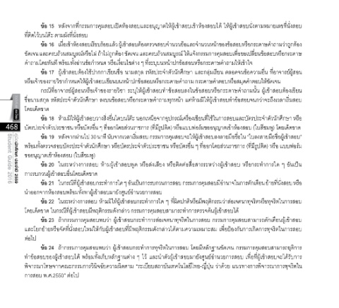 ข้อ 16 เมื่อเข้าห้องสอบเรียบร้อยแล้ว ผู้เข้าสอบต้องตรวจสอบจ�านวนข้อและจ�านวนหน้าของข้อสอบหรือกระดาษค�าถามว่าถูกต้อง