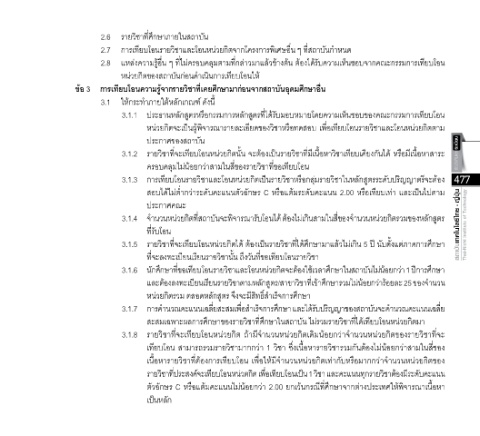 3.1.3 การเทียบโอนรายวิชาและโอนหน่วยกิตเป็นรายวิชาหรือกลุ่มรายวิชาในหลักสูตรระดับปริญญาตรีจะต้อง 477