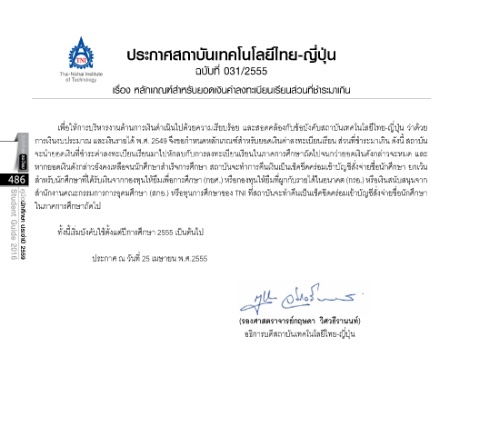 ประกาศสถาบันเทคโนโลยีไทย-ญี่ปุ่น