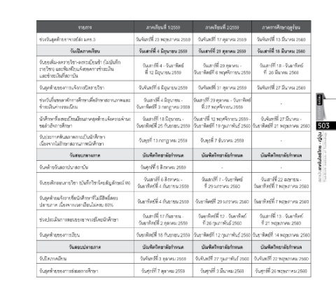ขอส�าเร็จการศึกษา วันอาทิตย์ที่ 25 กันยายน 2559 วันอาทิตย์ที่ 19 กุมภาพันธ์ 2560 วันอาทิตย์ที่ 21 พฤษภาคม 2560 503