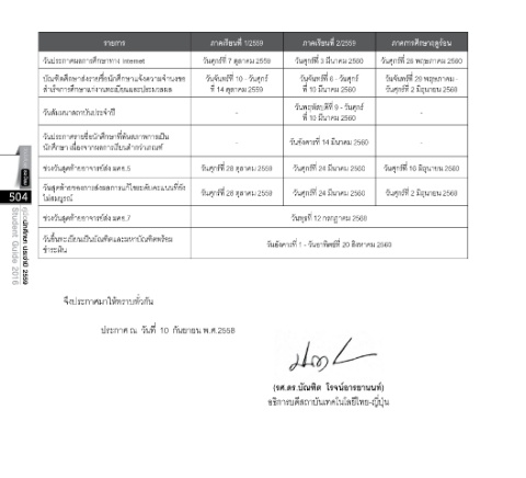 วันประกาศผลการศึกษาทาง Internet วันศุกร์ที่ 7 ตุลาคม 2559 วันศุกร์ที่ 3 มีนาคม 2560 วันศุกร์ที่ 26 พฤษภาคม 2560