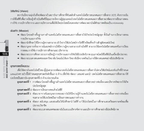 506 ➠ พัฒนาระบบการศึกษา ระบบการเรียนรู้ การบริหารและการวิจัยให้มีประสิทธิภาพ คุณภาพโดยใช้ไอซีทีเป็นเครื่องมือประกอบ