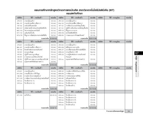 รหัสวิชา ปีที่ 3 ภาคเรียนที่ 1 หน่วยกิต รหัสวิชา ปีที่ 3 ภาคเรียนที่ 2 หน่วยกิต รหัสวิชา ปีที่ 3 ภาคฤดูร้อน หน่วยกิต สถาบันเทคโนโลยีไทย - ญี่ปุ่น Thai-Nichi Institute of Technology
