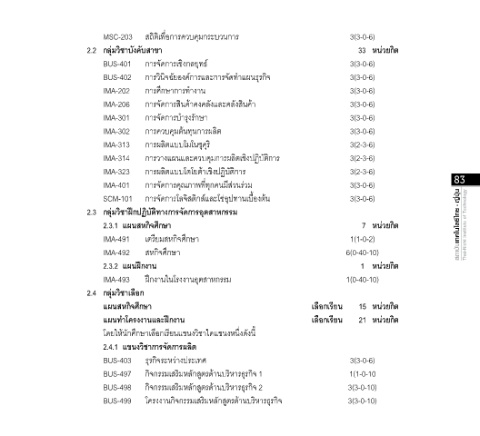 IMA-401 การจัดการคุณภาพที่ทุกคนมีส่วนร่วม 3(3-0-6) 83