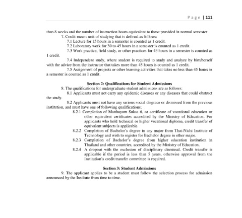8.2.2 Completion of Bachelor’s degree in any major from Thai-Nichi Institute of