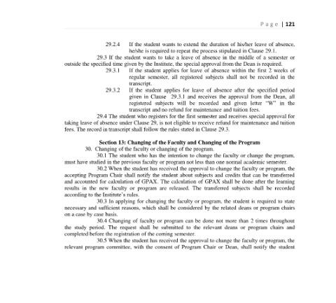 30.1 The student who has the intention to change the faculty or change the program,