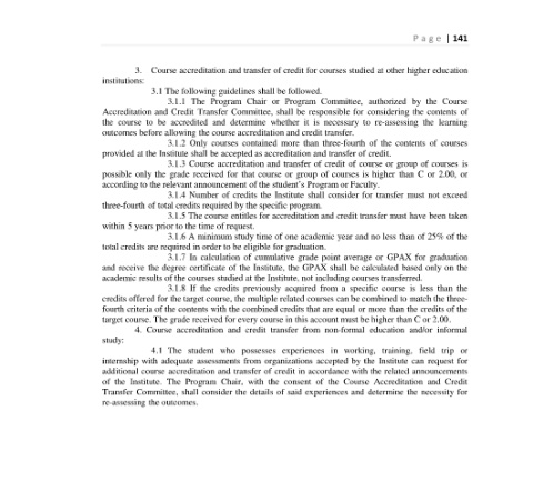 3.1.4 Number of credits the Institute shall consider for transfer must not exceed
