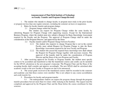 required by the Faculty and the Program. The approval of Program Change shall be under the
