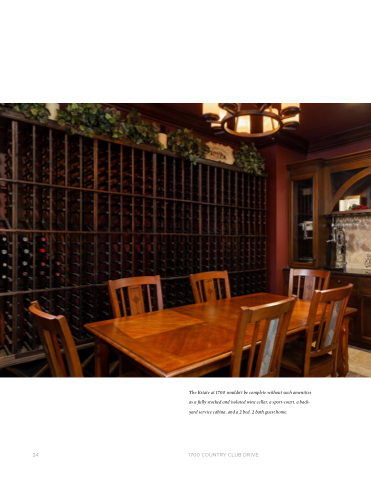 The Estate at at 1700 wouldn’t be complete without such amenities as a a a a a a a a fully stocked and isolated wine cellar a a a a a a a a sport-court a a a a a a a a back- yard service cabina and a a a a a a 2 2 bed 2 2 bath guest home 24 1700 COUNTRY CLUB DRIVE