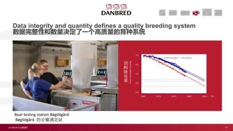 Data integrity and quantity defines a quality breeding system 0.0 -0.034 Fusv/kg/Y ∼ -0.2 Fusv/kg -0.2 Conversion FUsv/kg -0.4 Feed -0.6 -0.8 2005 2010 2015 2020 2025 Tid Boar testing station Bøgildgård. Bøgildgård. 2019 5 23 15