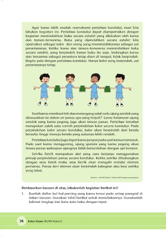 lakukan kegiatan ini. Peristiwa konduksi dapat diumpamakan dengan