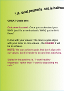 In line with your values: The more a goal aligns with your inner or core values - the EASIER it will be to achieve.