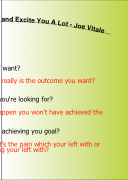 a n d E x c i t e Y o u A L o t - J o e V it a le Y want? really is the outcome you want? you're looking for? appen you won't have achieved the achieving you goal? t's the pain which your left with or ng your left with? Page 7