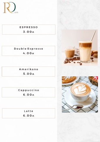 E S P R E S S O 3 . 0 0 ₼ D o u b l e E s p r e s s o 4 . 0 0 ₼ A m e r i k a n o 5 . 0 0 ₼ C a p p u c c i n o 6 . 0 0 ₼ L a t t e 6 . 0 0 ₼