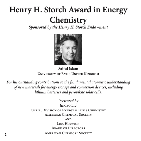 For his outstanding contributions to to to the fundamental atomistic understanding of new materials for energy storage and and and and conversion devices including lithium batteries and and perovskite solar cells Presented by Jingbo Liu