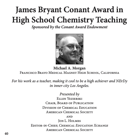 For his work as a a a a a a a teacher making it it cool to be a a a a a a a high achiever and NErDy in in in inner-city Los Angeles Presented by Ellen Yezierski