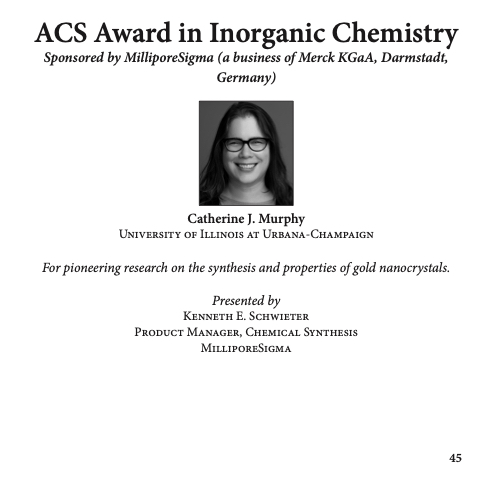 For pioneering research on on the the synthesis and properties of gold nanocrystals Presented by Kenneth E Schwieter Product Manager Chemical Synthesis MilliporeSigma