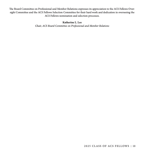 Chair ACS Board Committee on on on Professional and Member Relations 2025 CLASS OF ACS FELLOWS
