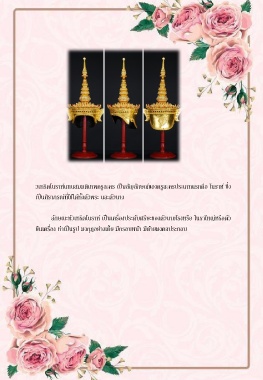 ยืนเครื่อง ท ำเป็นรูป มงกุฏอย่ำงเตี้ย มีกรอบหน้ำ มีด้ำยมงคลประกอบ