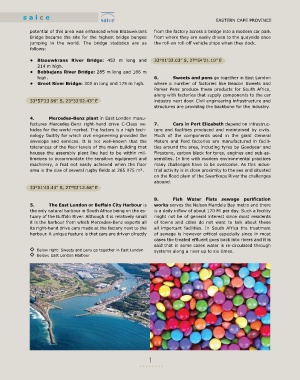 • Groot River Bridge: 300 m long and 175 m high. where a number of factories like Beacon Sweets and