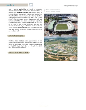 of stadiums and other amenities in the Free State. At ◊ Bottom: Phakisa Raceway