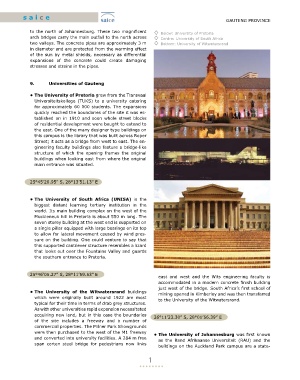 to the north of Johannesburg. These two magnificent ◊ Below: University of Pretoria