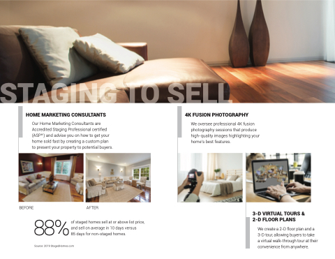 Our Home Marketing Consultants are Accredited Staging Professional certified (ASP® ) and advise you on how to get your home sold fast by creating a custom plan to present your property to potential buyers.