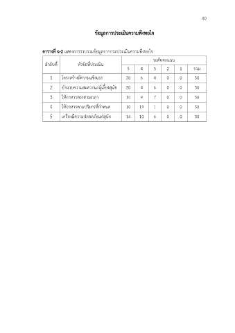 ตารางที่ ฉ-2 แสดงการรวบรวมข้อมูลจากกระประเมินความพึงพอใจ