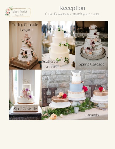 Reception Cake Flowers to match your event Trailing Cascade Design Scattered Spilling Cascade Blooms Spot Cascade Garlands