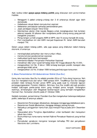 Pengurangan jumlah anggota ABRI di MPR, dari 75 orang menjadi 38 orang.
