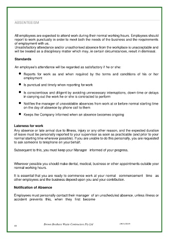 Unsatisfactory attendance and/or unauthorised absence from the workplace is unacceptable and