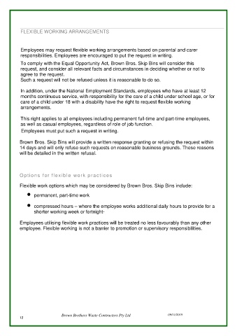 Flexible work options which may be considered by Brown Bros. Skip Bins include: