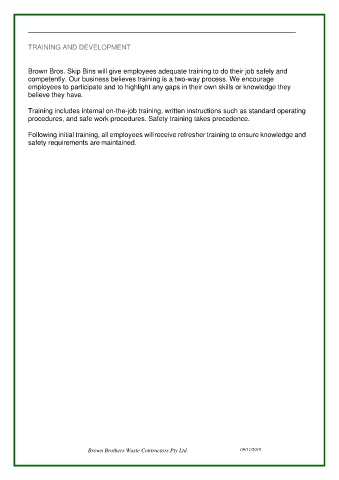 Brown Bros. Skip Bins will give employees adequate training to do their job safely and