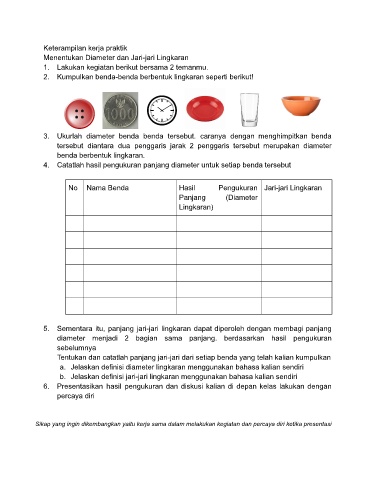 Tentukan dan catatlah panjang jari-jari dari setiap benda yang telah kalian kumpulkan