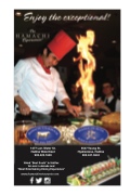 1477 Lwr. Water St. Halifax Waterfront 902.422.1600 Voted “Best Sushi” in Halifax for over a decade and “Most Entertaining Dining Experience” www.hamachirestaurants.com 5537 Young St. Hydrostone, Halifax 902.431.5543