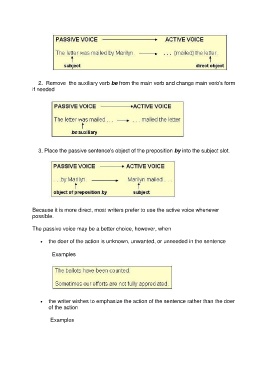 3. Place the passive sentence's object of the preposition by into the subject slot.