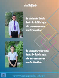 ประวัติผู้จัดท า ชื่อ นายวันเฉลิม ปิ่นแก้ว ชื่อเล่น ตั้ม ชั้นปี่ที่ ๒ หมู่ ๒ รหัส ๖๐๐๑๑๓๑๑๐๐๔๔ สาขาวิชาสังคมศึกษา ชื่อ นางสาวรัตนาภรณ์ ซาซิโย ชื่อเล่น กิ๊ฟ ชั้นปีที่ ๒ หมู่ ๒ รหัส ๖๐๐๑๑๓๑๑๐๐๕๕ สาขาวิชาสังคมศึกษา เอกสารประกอบการเรียน : หิน แร่