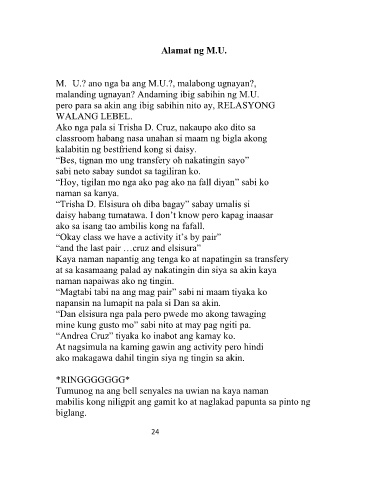 malanding ugnayan? Andaming ibig sabihin ng M.U. kamay sa aking likod at pagtingin ko ay nakita ko si Dan.