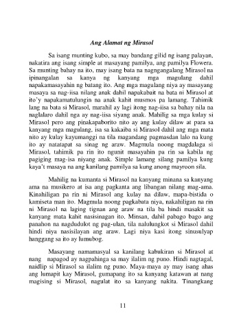 Aking Ina lang na bata si Mirasol, marahil ay lagi itong nag-iisa sa bahay nila na