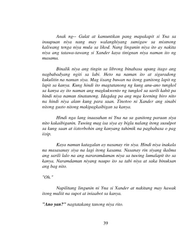 na hindi niya alam kung para saan. Tinotoo ni Xander ang sinabi hagdan sa loob ng gymnasium at pinapanood ang mga estudyanteng