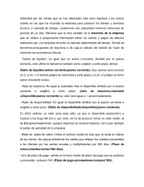 - Ratio de tesorería: Es igual al realizable más el disponible dividido por el pasivo