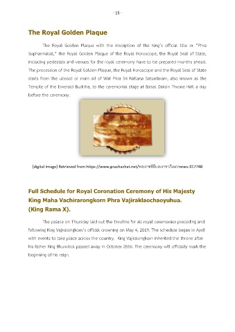 The Royal Golden Plaque with the inscription of the King’s official title or “Phra