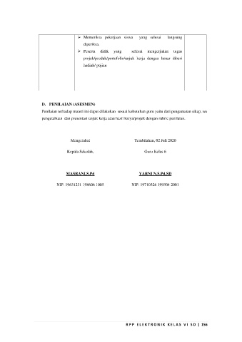 Penilaian terhadap materi ini dapat dilakukan sesuai kebutuhan guru yaitu dari pengamatan sikap, tes
