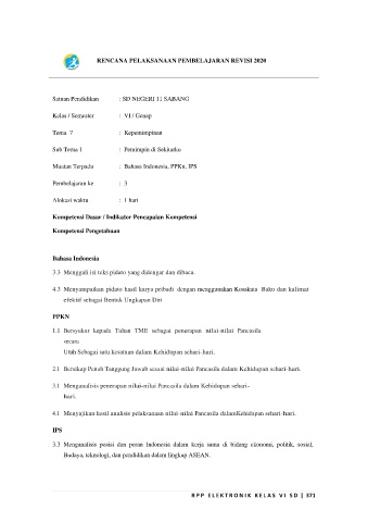 RENCANA PELAKSANAAN PEMBELAJARAN REVISI 2020