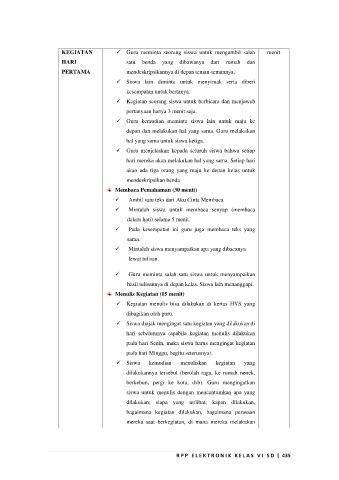 ✓ Siswa diajak mengingat satu kegiatan yang dilakukan di