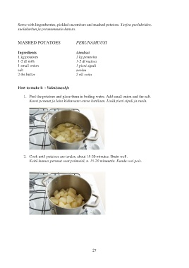 1. Peel the potatoes and place them in boiling water. Add small onion and the salt.