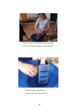 Grate the carrots and add them to the salad sauce. Raspele die Möhren und gib sie in die Salatsoße. Wash the apple and grate him. Wasche den Apfel und reibe ihn. 36