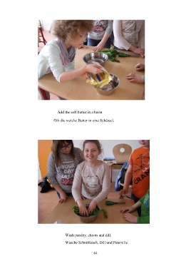 Add the soft butter in a basin Gib die weiche Butter in eine Schüssel. Wash parsley, chives and dill. Wasche Schnittlauch, Dill und Petersilie. 44